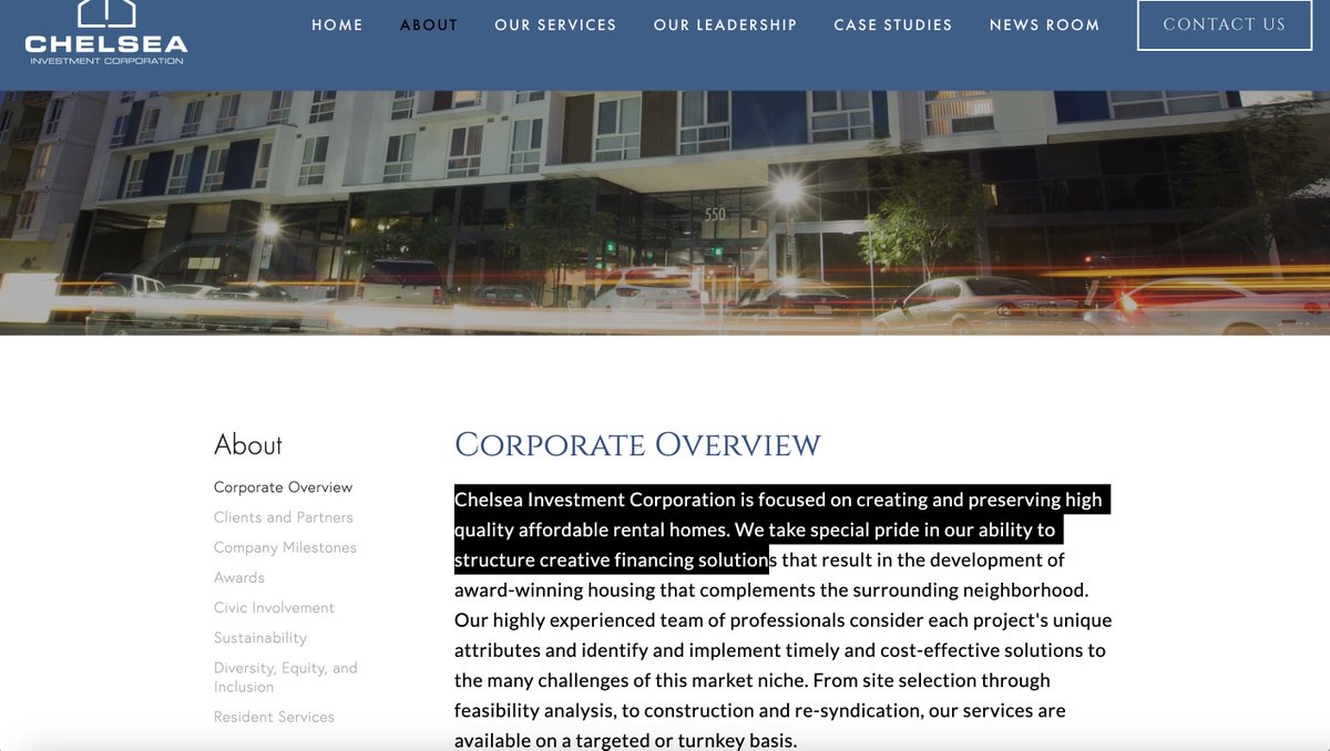 There is one investment group that pops up over and over again in all these city housing deals — the Chelsea Investment Corporation. Image