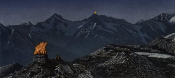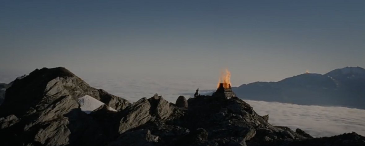 One of the most famous moments comes in the beacons of Gondor sequence. It was inspired by a system used by the Byzantine Empire in the 9th century. To create it, the first beacon was physically lit, the rest were digitally added.