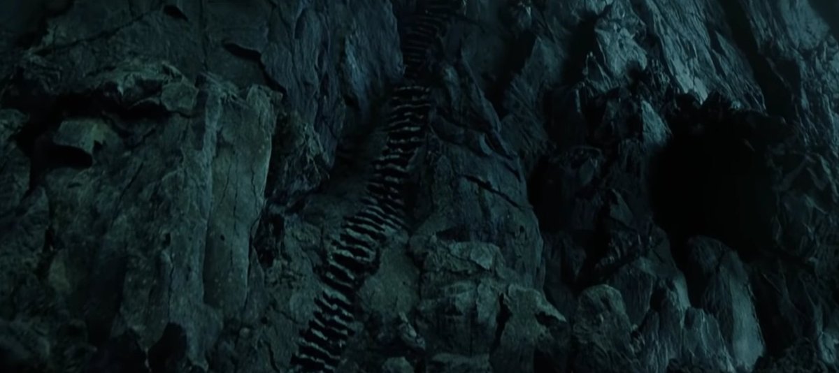 The stairs of Cirith Ungol were created as a physical set for the film, mostly out of polystyrene. The steps apparently reacted with the Hobbits’ prosthetic feet, leading to Elijah Wood and Sean Astin frequently becoming stuck climbing them.