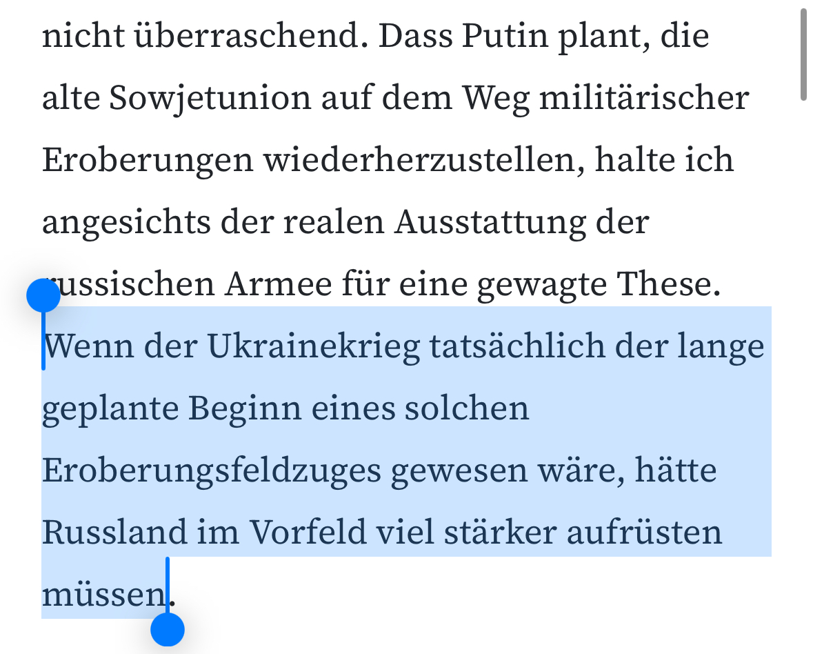Stattdessen kann Wagenknecht die Aggression Russlands ein weiteres Mal als eine Art Präventivkriegshandlung darstellen, indem es die Invasion als Reaktion auf eine zumindest "gefühlte" Bedrohungslage darstellt. 7/