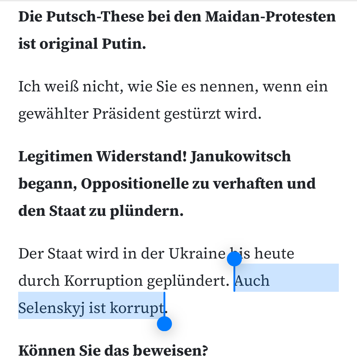Aber das interessiert Wagenknecht nicht, denn sie suggeriert, die Ukraine sei es ohnehin nicht wert, verteidigt zu werden - alles korrupt und chaotisch. 14/