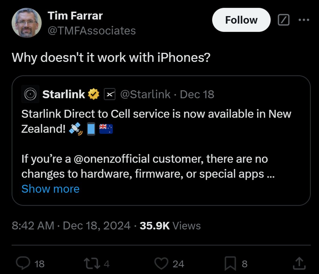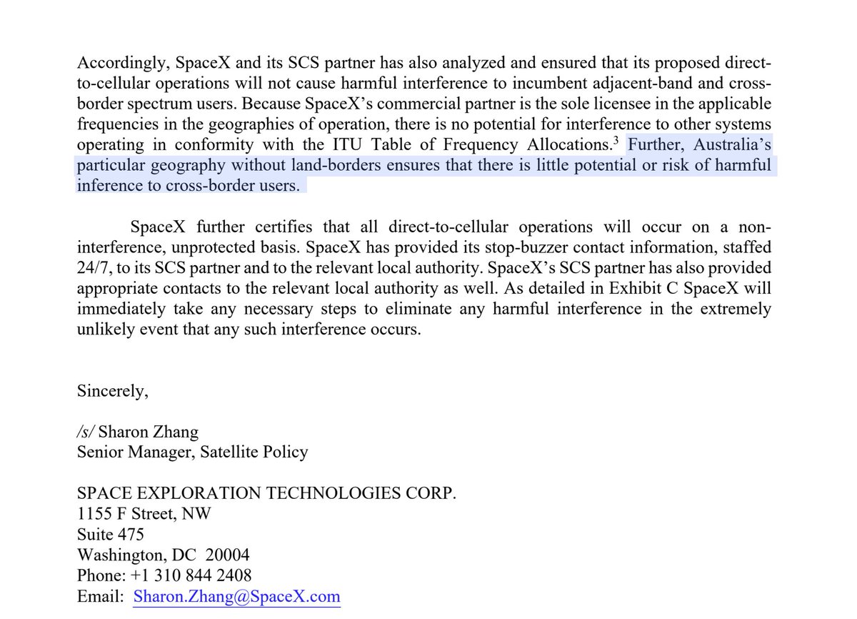 We talked about the problem Starlink has with national borders. Australia has no borders.
