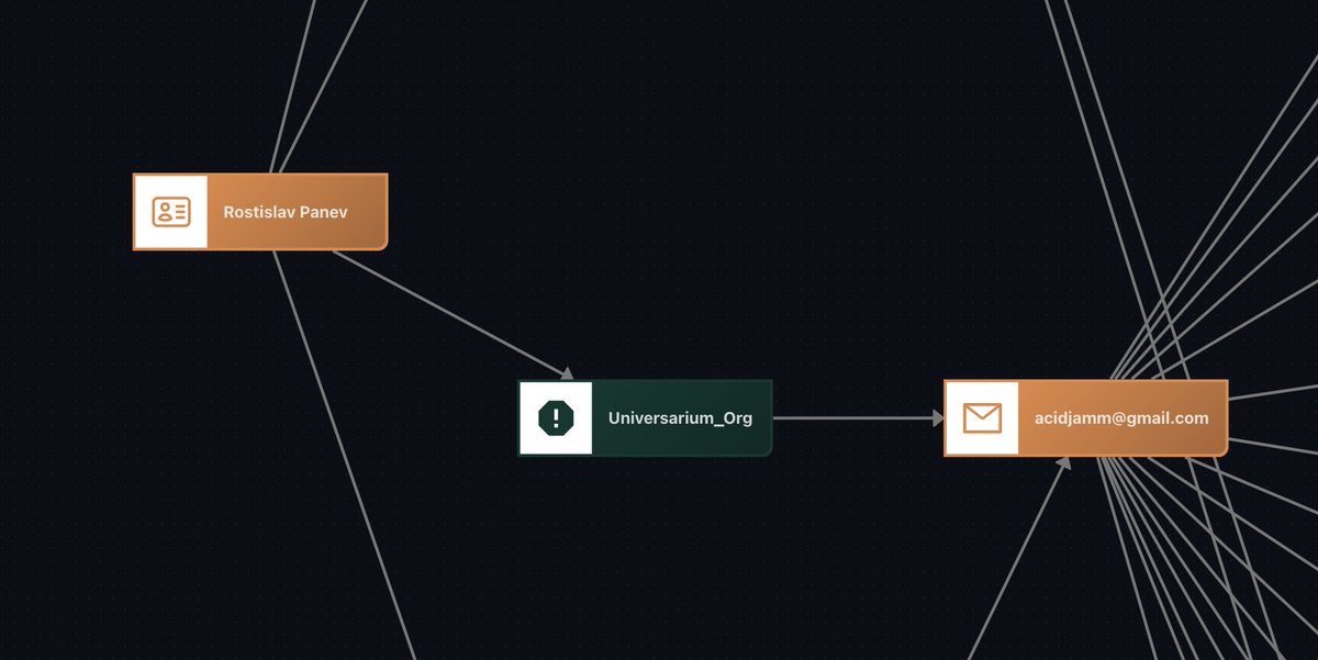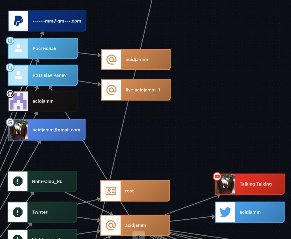 By searching the name "Rostislav Panev" in leaked data, we identified the email acidjamm@gmail.com appearing in two leaks.