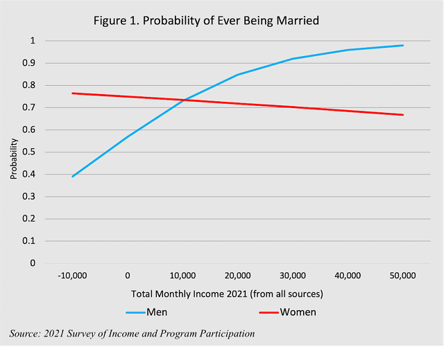 To put it simply: high class men want to marry high class women, and vice-versa. This is true regardless of how class translates to personal income for women. 70s changes to marriage have turned it into an upper-class institution (see: Coming Apart).