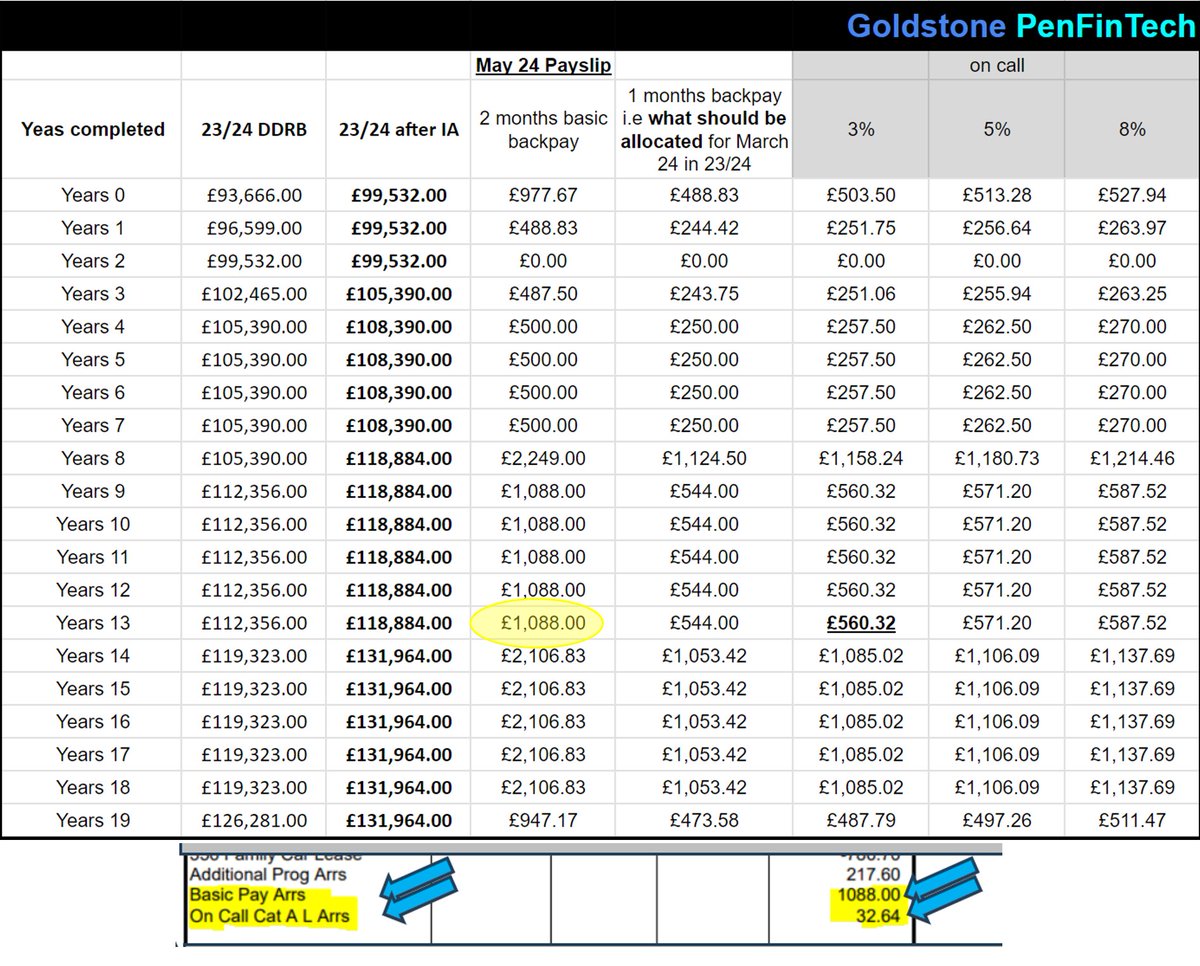 7/ If you check your May '24 payslip (when most backpay arrears were paid) you should see an entry for basic pay arrears +/- on call arrears which are both PENSIONABLE