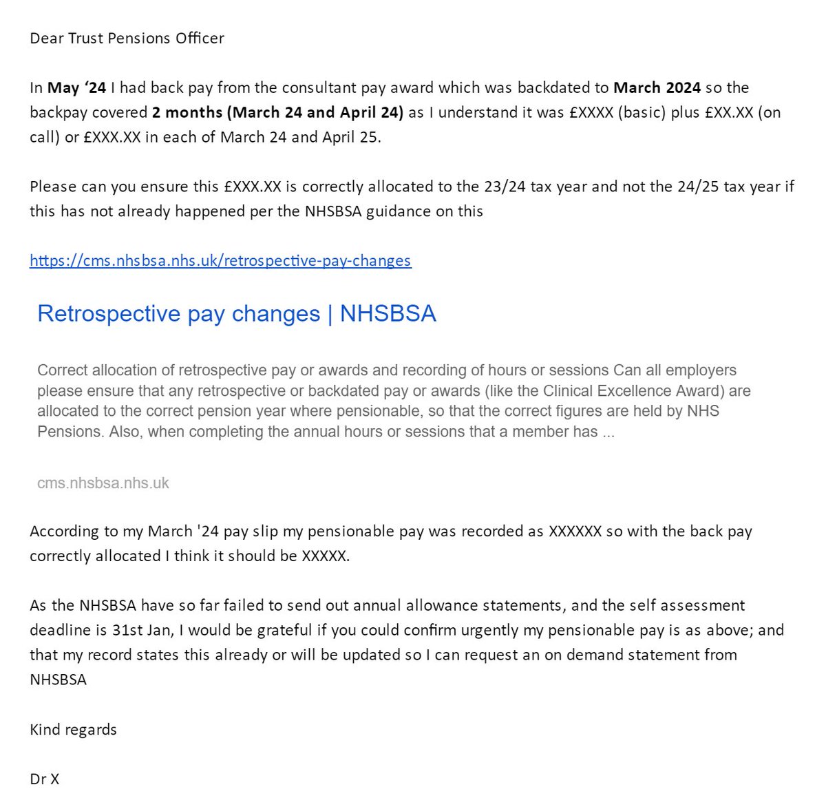 "Can all employers please ensure that any retrospective or backdated pay ...are allocated to the correct pension year where pensionable, so that the correct figures are held by NHS Pensions"cms.nhsbsa.nhs.uk/retrospective-…