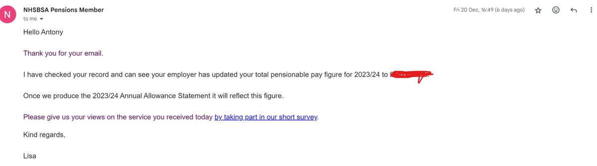 18/ My trust fixed this very quikcly for me and I emailed NHS pensions the following day asking them to send my "on demand" Pension Saving Statement for 23/24 ensuring the new amount and they also responded back really quickly