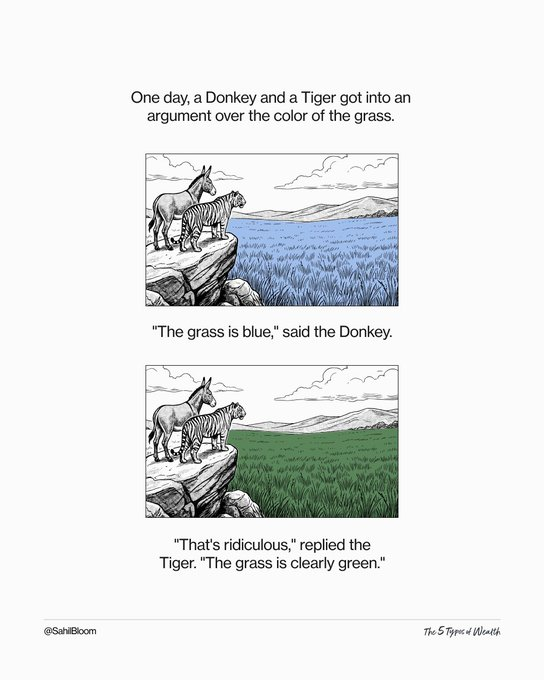 A Donkey and a Tiger got into an argument over the color of the grass… Image