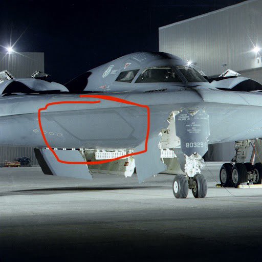 There’s no visible EOTS-esque system anywhere on the underside, so how does this thing do ground targeting? My theory is that it’s again a more strategic strike platform like the B-2/21. There aren’t any noticeable serrations on the nose to infer a typical forward looking array—