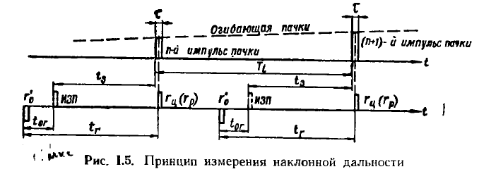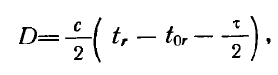 Once tracking of target elevation and azimuth is achieved, slant range to target can be determined. To do this, the RSN-75 emits its radar pulse alongside an internal reference pulse that is half the width and placed in the leading half of the radar pulse. When a return is received, another reference pulse is generated exactly 45 microseconds after. By measuring the time difference between the reference pulses and adding the 45 microseconds between the echo and reference pulse, the total travel time of the radar wave can be calculated thus allowing the system to calculate slant range with a simple mathematical calculation (illustrated in the attached images). Solving for Distance, D, we get: distance equals half the speed of light multiplied by the difference of the measured ranging time, echo reference pulse and half the pulse width.