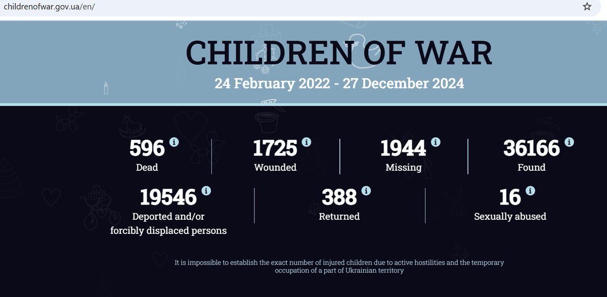 The additional information under the number of deported and or forcibly displaced children notes open source data obtained from the russian federation states it's 744 thousand children. childrenofwar.gov.ua/en/
