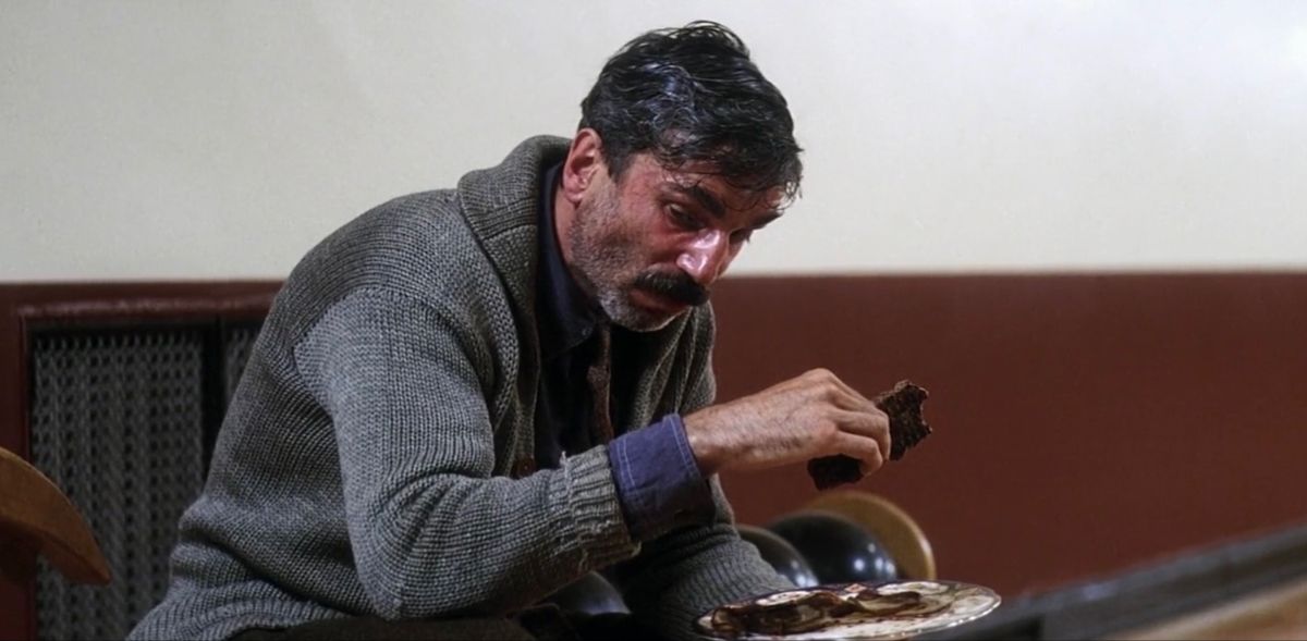 PTA and his editors would have one night per week where they would have steak and straight vodka for dinner. The idea was that it would keep them in the mentality of Daniel Plainview – DP eats dry steak and drinks vodka from the bottle at the end of the movie.