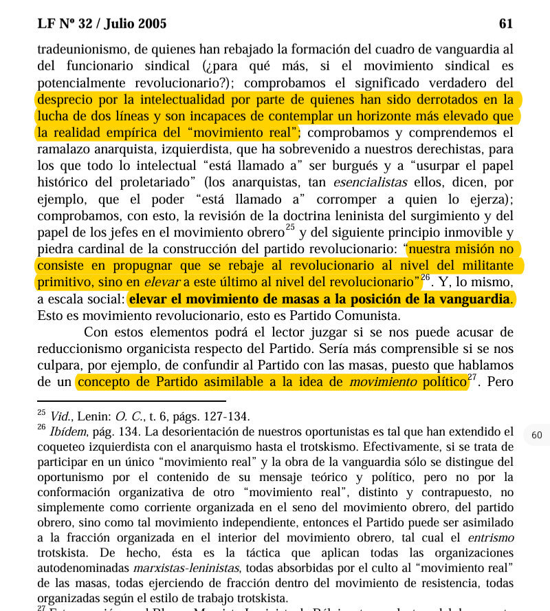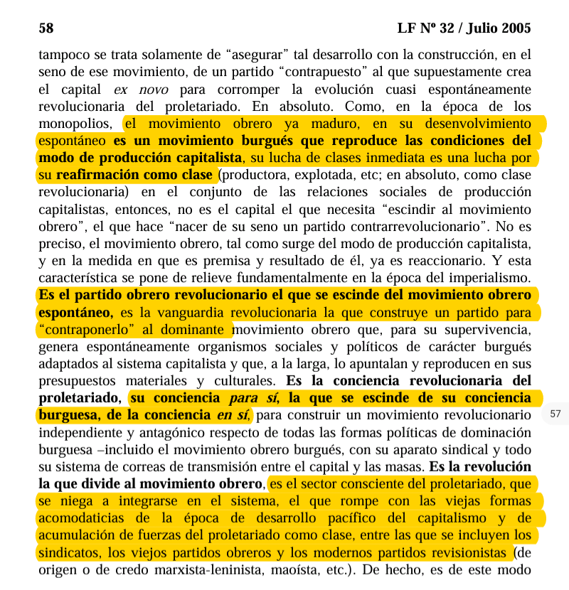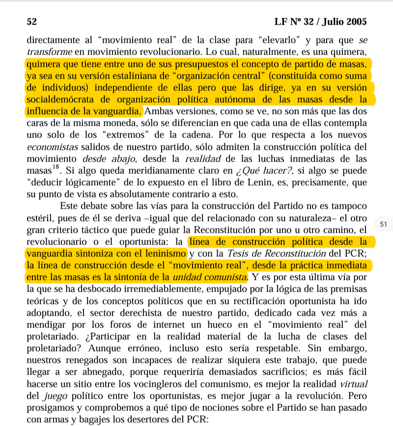 Estas ideas leninianas, cuyo legado recoge la LR, no implican desechar o renunciar a elaborar una línea de masas, sino llevar a cabo la fusión con la vanguardia práctica y la conquista de las masas una vez (re)constituída (1o desde fuera) la vanguardia ideológica y política. Image