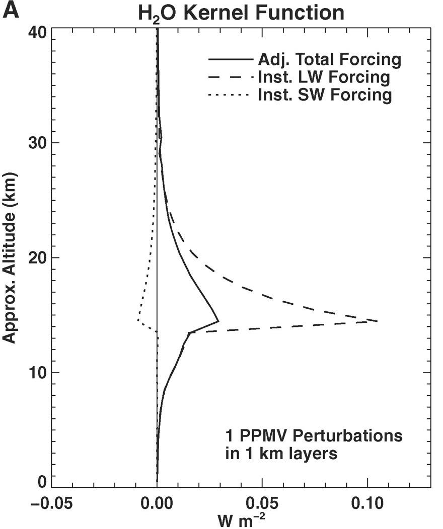L’effetto radiativo di un aumento del contenuto di vapore acqueo è maggiore nei luoghi in cui la sua concentrazione è relativamente bassa in condizioni non perturbate, come nella UTLS. 👇 (grafico da Solomon et al. 2010) / science.org/doi/10.1126/sc…