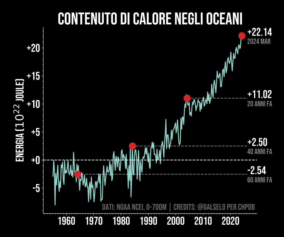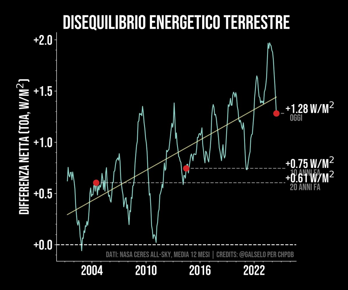 Se uno sceglie la 3, dovrebbe però poi anche spiegare come la variabilità interna sia in grado di produrre lo sbilancio energetico crescente di questi ultimi decenni↙️, nonché il crescente contenuto di energia negli oceani.↘️ /