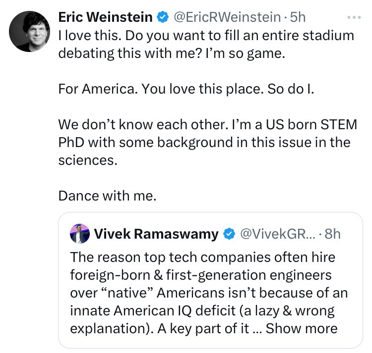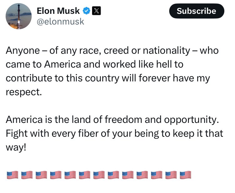 Who I do greatly respect for opening up the X app to what it is, but also vehemently disagree with on the immigration stance
