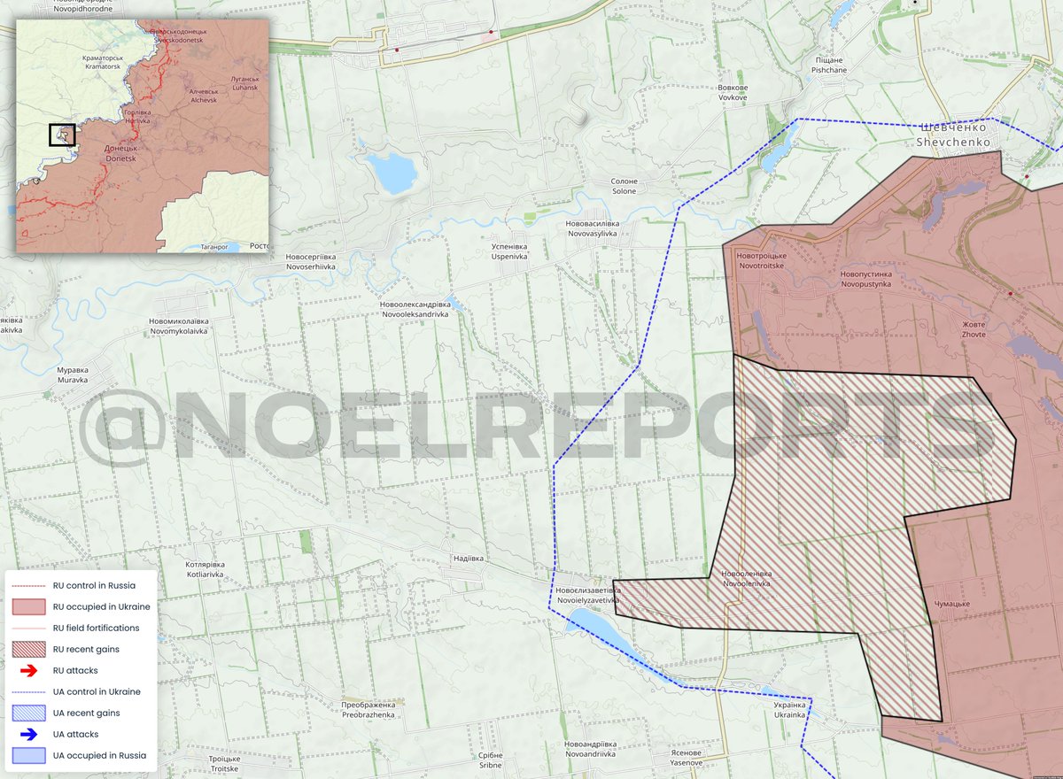 South of Pokrovsk, Russians have advanced to the west and occupied Novoolenivka and a part of Novoielyzavetivka. Russians from this point can now both move south to Kurakhove and cut it from the north and/or go north and try to bypass Pokrovsk to avoid urban combat.
