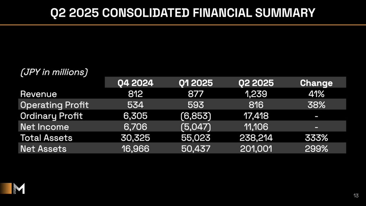 Q2 was the strongest in our history, with record operating profit and net income. As a profitable, cash flow positive company, 100% of the funds we raise can be directed into accumulating Bitcoin.