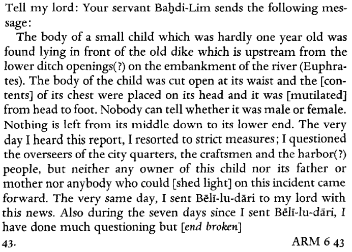 7. Report of an investigation of a brutal murder in the kingdom of Mari.