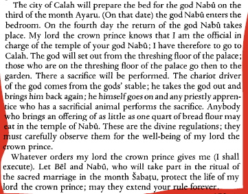 15. Letter describing a religious ritual between the gods in the city of Calah.