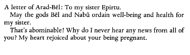 19. Bayblonain letter from a brother to his sister.
