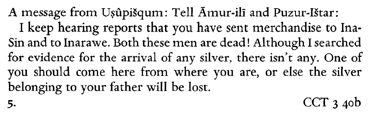 21. Letter between Anatolian merchants, admonishing not to send merchandise to those who are permanently unavailable.