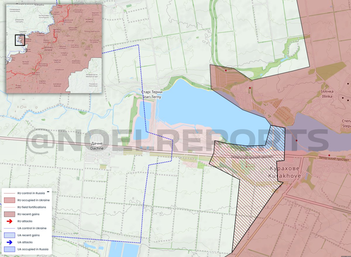 South of Pokrovsk it became known that Russia -despite Ukrainian counterattacks- managed to occupy Shevchenko and moved further north. The actual situation is fluid but the only defensive lines left for Ukrainian forces are now on the outskirts of Pokrovsk.