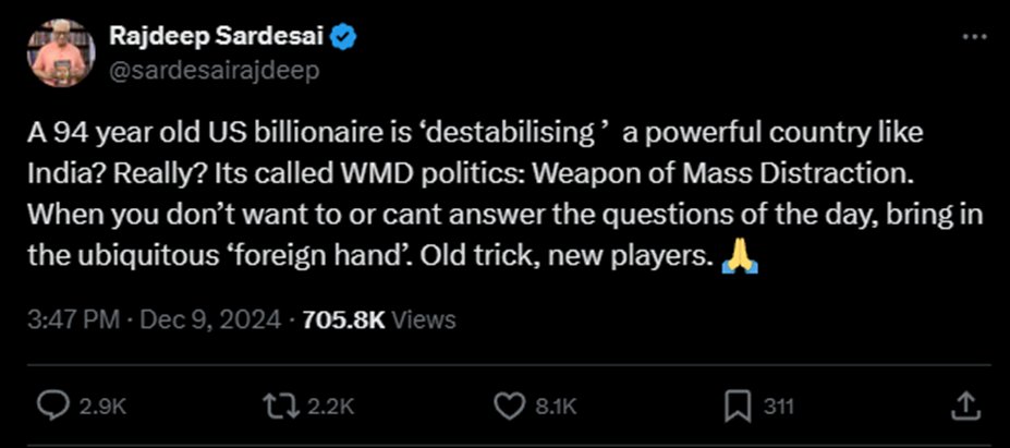 Rajdeep made a cat call for downplaying the Soros chorus going on in India.
