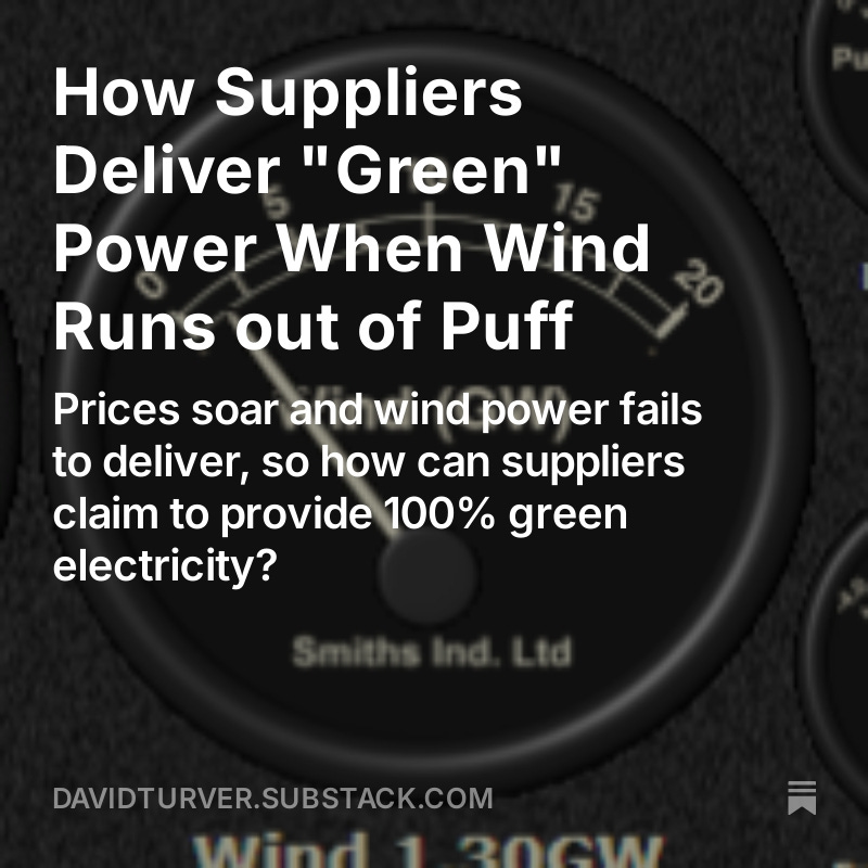 How do electricity suppliers manage to supply "100% green electricity" when like this week, the wind runs out of puff? A thread 🧵(1/n)