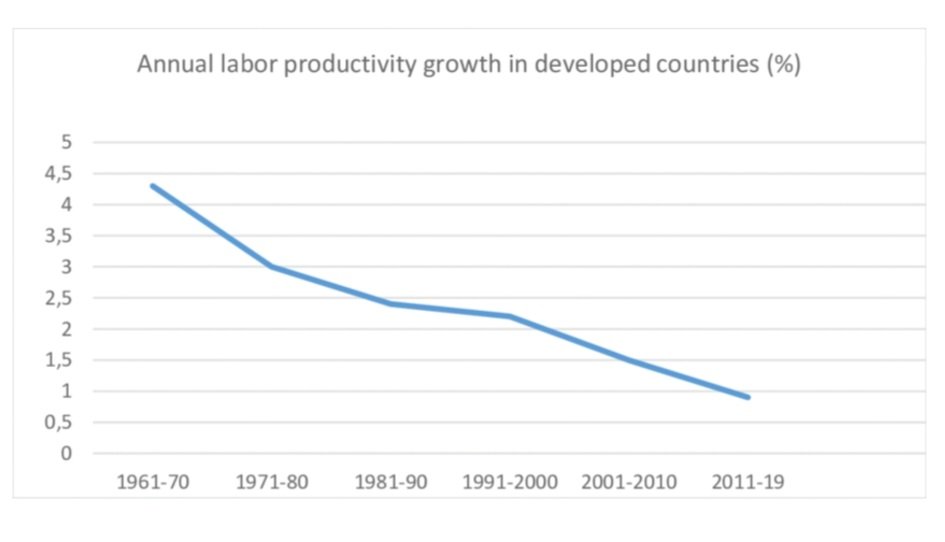 Crecimiento anual de la productividad en países desarrollados (1961-2019)