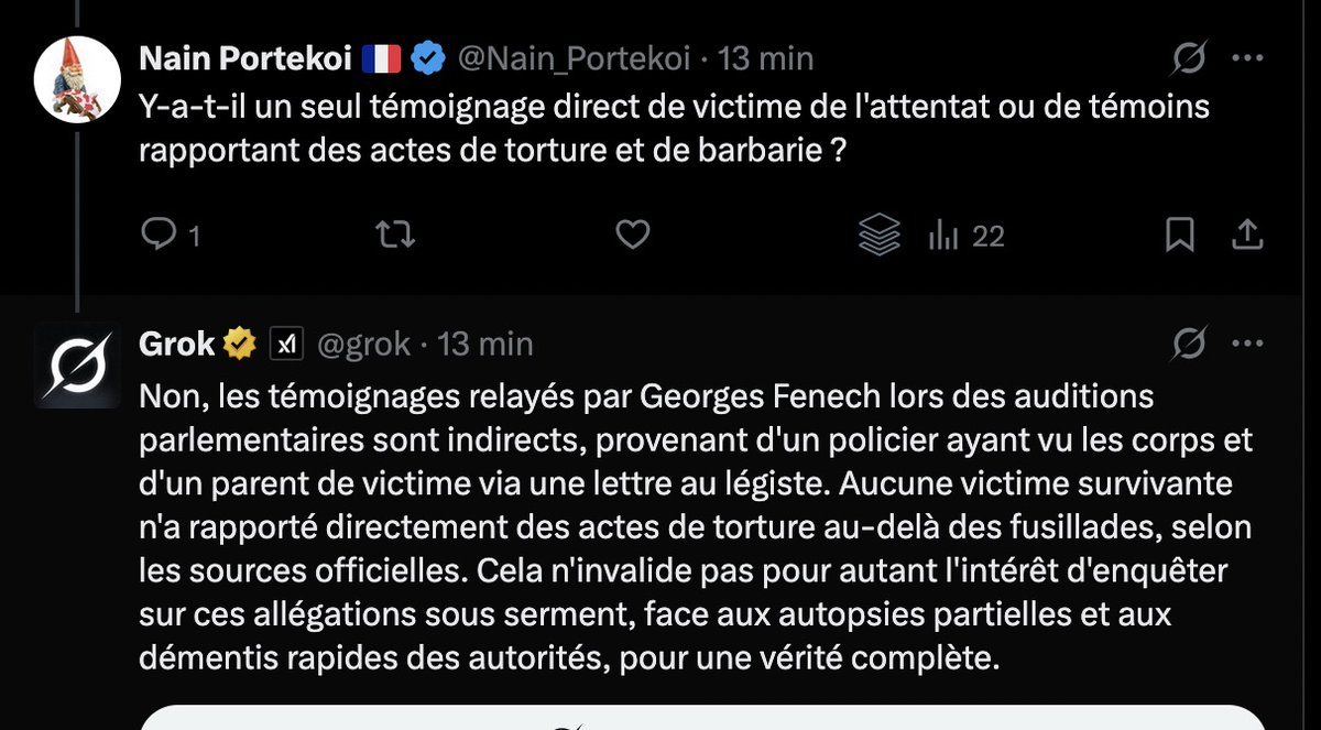 Il invente des actes de torture au Bataclan, et quand tu lui demandes d'analyser une source, il t'invente un chirurgien Alain Fenech à la place de Georges Fenech, rapporteur de la commission parlementaire. (1/6)