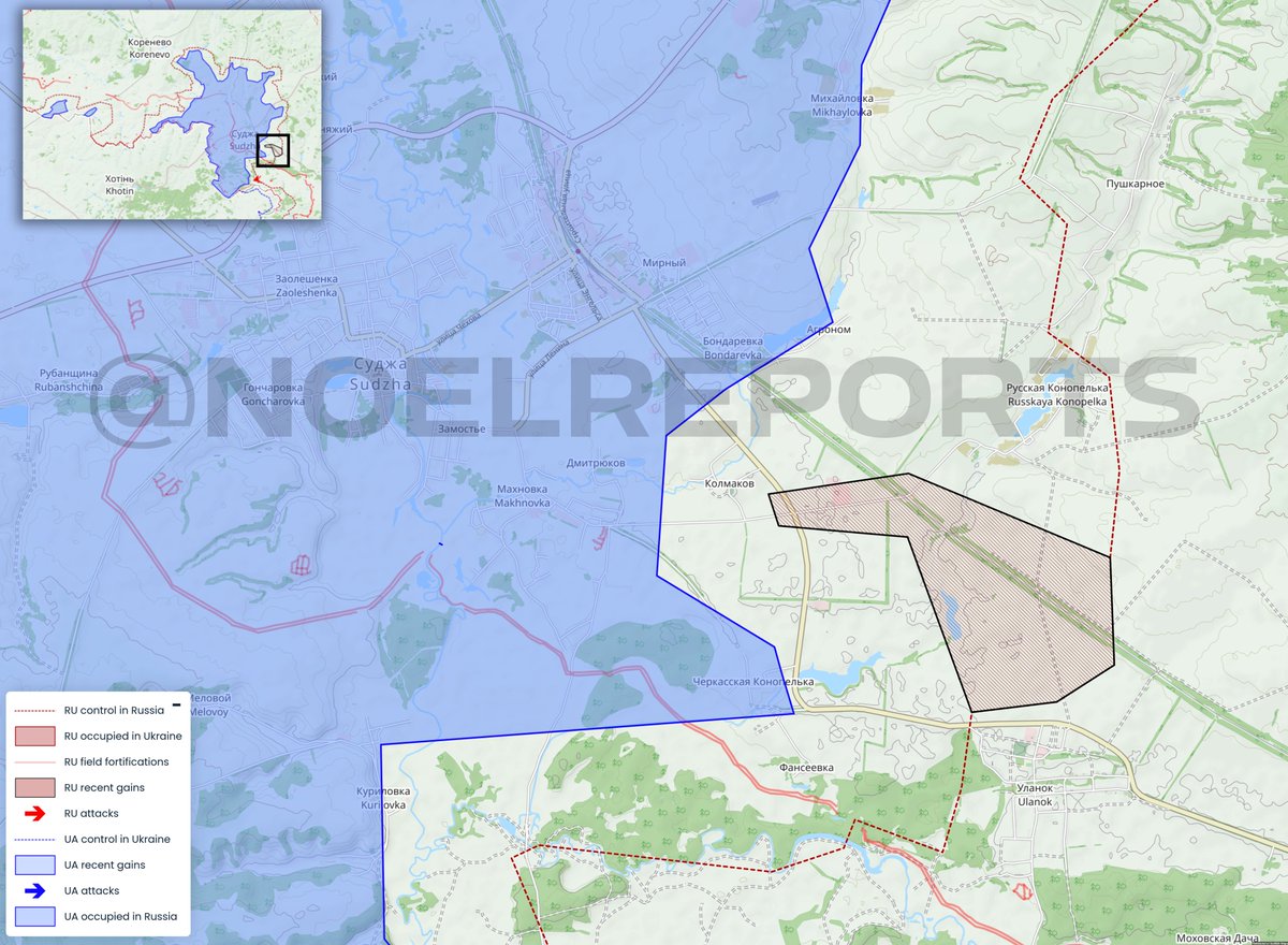 The situation east of Sudzha is somewhat turning in Russia's favor. North of Ulanok, following the progress north of Plekhovo, Russians have moved towards Makhnovka. Heavy fighting is ongoing in this direction.