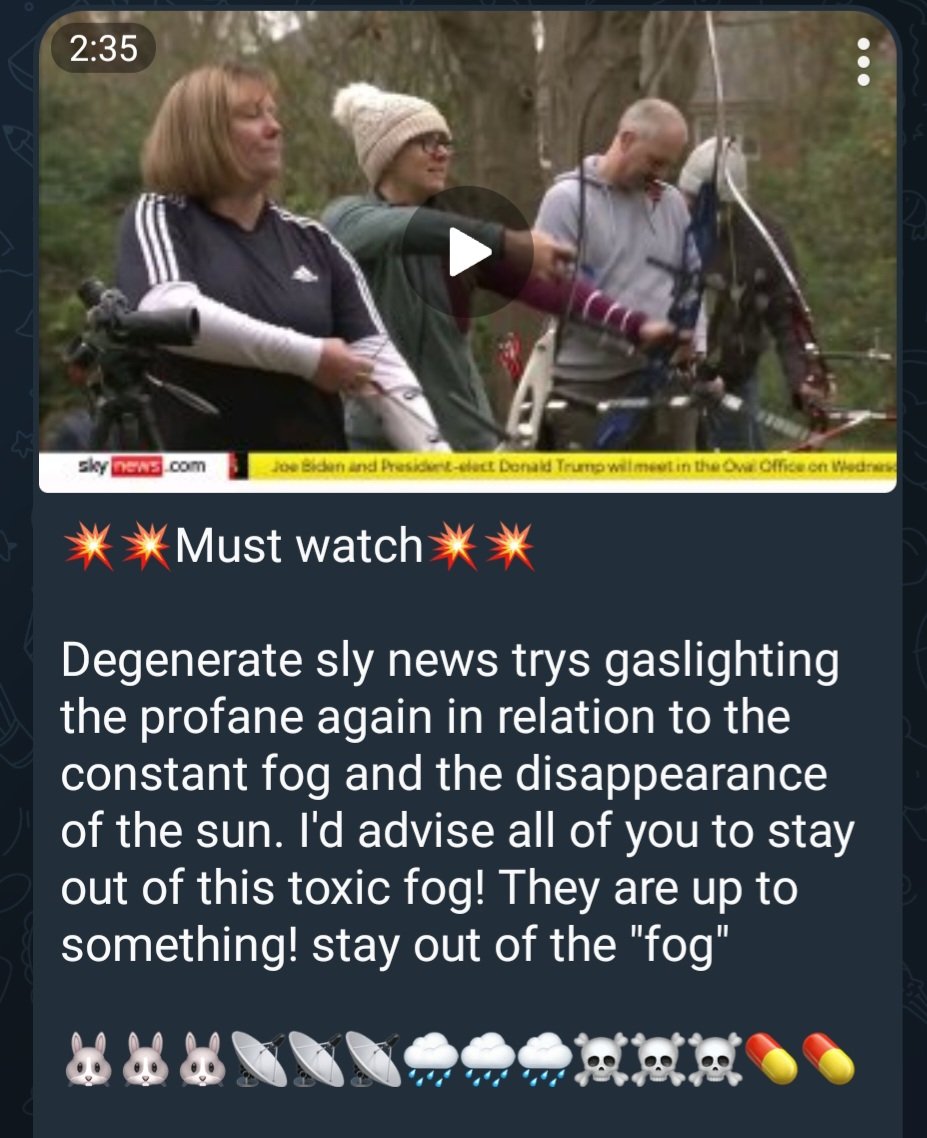 Globslist Sky News trying to normalise a "fog" that lasts for weeks and is so thick, you can't even shoot straight 🤡 Image