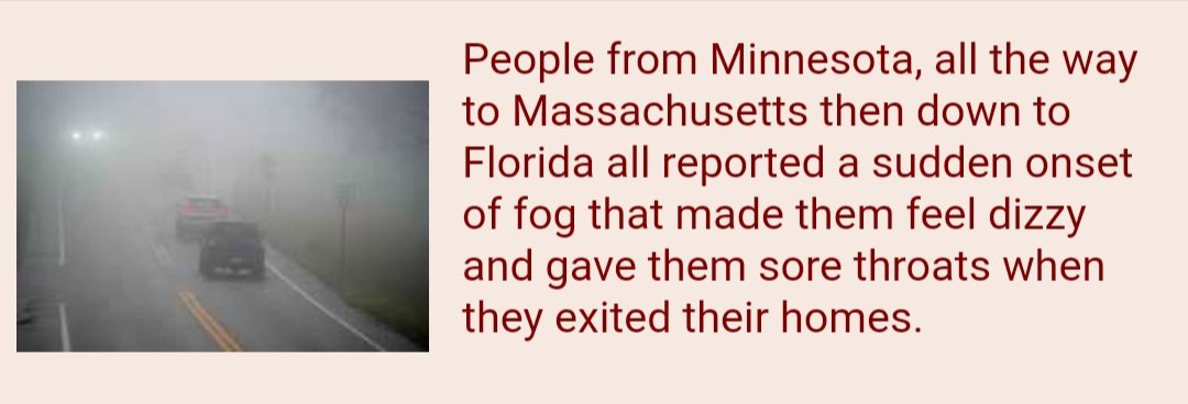Think a fog can't make people sick, even be deadly? Study here. Why are so many unrelated people sharing stories of illness and nervous system issues within hours of immersion in these current 'fogs' in many locations? Fogs are clearly carrier agents. Image