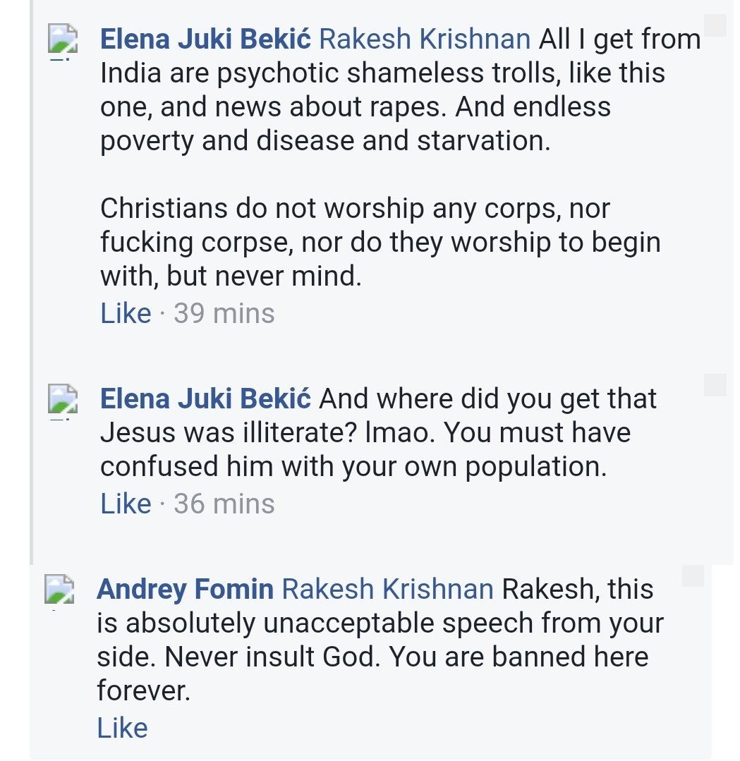 But the Indian guy's out of place comments did not warrant a nasty response from a Croatian woman who abused Hindu Gods as rats. Her exact words below:
