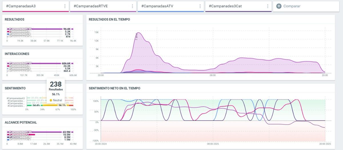 La campaña de insultos no fue espontánea durante el programa, sino a partir de las 9 de la mañana del día 1, quizás como respuesta al éxito de Broncano y Lalachus, que fueron los más mencionados en redes, al igual que #CampanadasRTVE tuvo 20 veces más menciones que el resto.