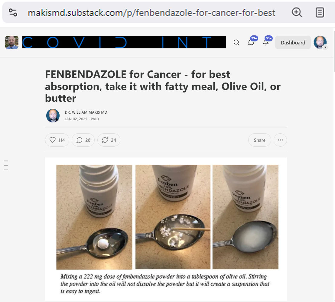 NEW ARTICLE: FENBENDAZOLE for Cancer - for best absorption, take it with fatty meal, Olive Oil, or butter