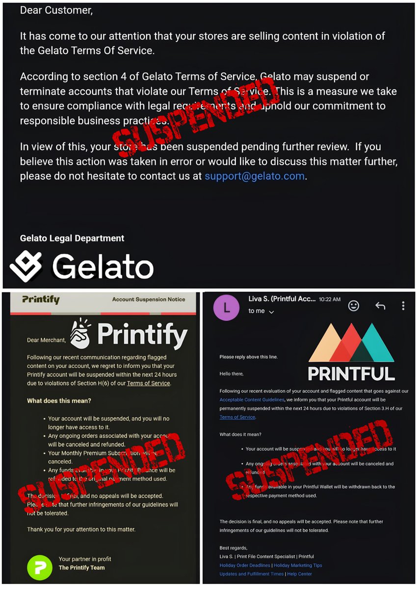 They couldn't get Shopify to shut me down, so they decided to take out my print providers instead. You can't sell T-Shirts if you can't print them.