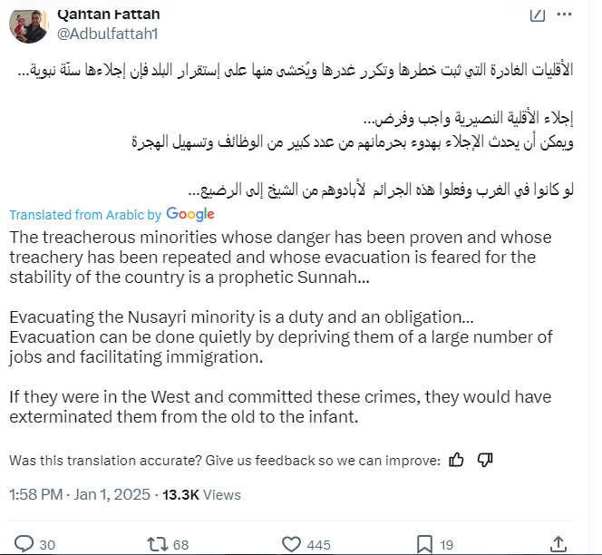 Anti-Assad species are openly discussing how to apply Sharia genocide against minorities "quietly" in Syria by depriving them of jobs & make immigration easy so Westerns may exterminate all Alawites from old to infants !