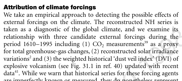 MBH98 uses the old reconstruction for signal detection. Since the forcing data begins in the early 1600s, only the post-1600 portion of the reconstruction is shown in the paper.