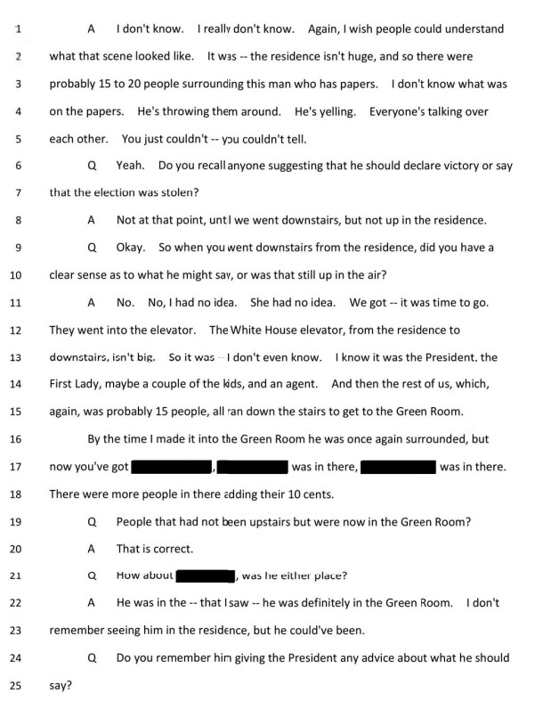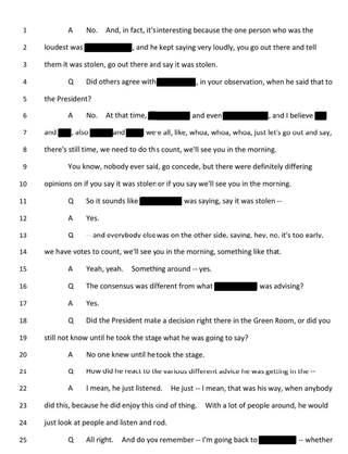 Excerpt (Filing): “[P15] Director of Oval Office Operations. Witnessed unprompted comment defendant made to his family members in which defendant suggested he would fight to remain in power regardless whether he had won the election.”