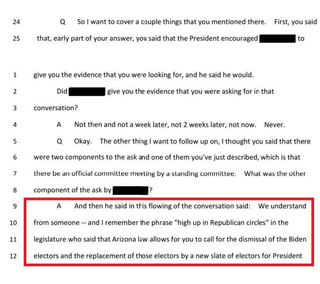 Excerpt (Filing): "Central to the development of the 'alternate electors' plan, outlining a strategy to organize fake slates in states won by Biden."