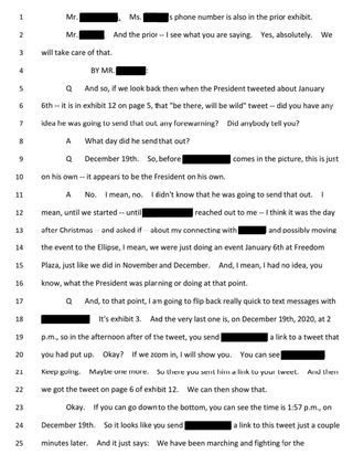 Excerpts (Filing): [CC6] - "On December 25, [CC5] proposed in a text message to [CC2] and [CC6] that Pence permit an unlimited filibuster.