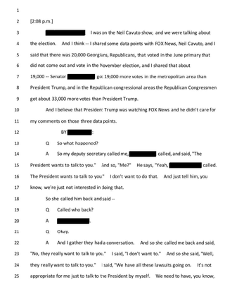 Excerpt (Filing): “On December 8, the defendant called Georgia Attorney General [P26]... [P26] told the defendant that he was not seeing evidence of fraud in Georgia”.