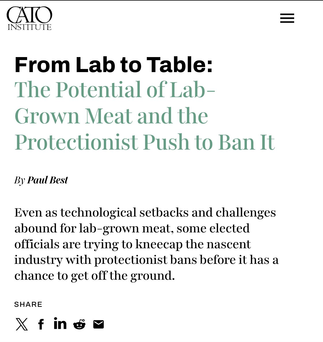🧵 Who’s behind the cultivated meat bans? Not the meat industry, & not conservatives/libertarians. They’re calling the bans Orwellian, hypocritical, unconstitutional, and worse.