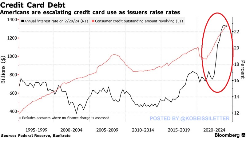 The average interest rate on this credit card debt is also setting at an all time high of 23.4%. Image