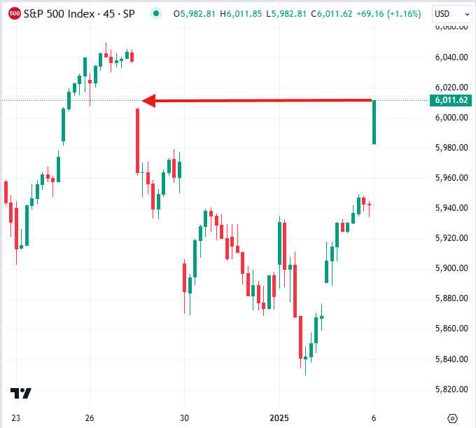 Today's S&P 500 rally above 6,000 puts the index up nearly 2% year-to-date.