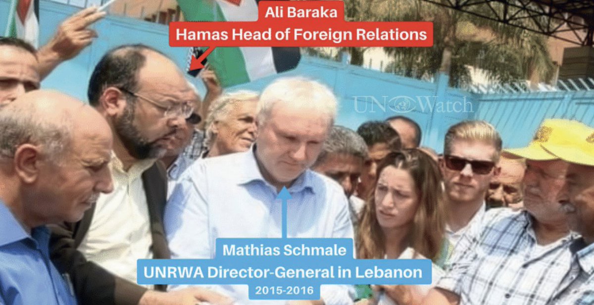 5/ @MatzSchmale, the former UNRWA director in Lebanon, addressed a Hamas rally in August 2018 alongside Ali Baraka, one of six Hamas terrorist leaders indicted in September by the US Department of Justice, as the latter told the crowd that donor states must support UNRWA “until we return to Palestine.”