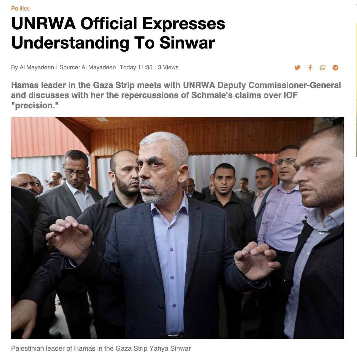 7/ Former Deputy Commissioner-General @LeniStenseth personally went to Gaza, in June 2021, to kowtow before Yahya Sinwar, the Hamas terror chief who masterminded the October 7th massacre.