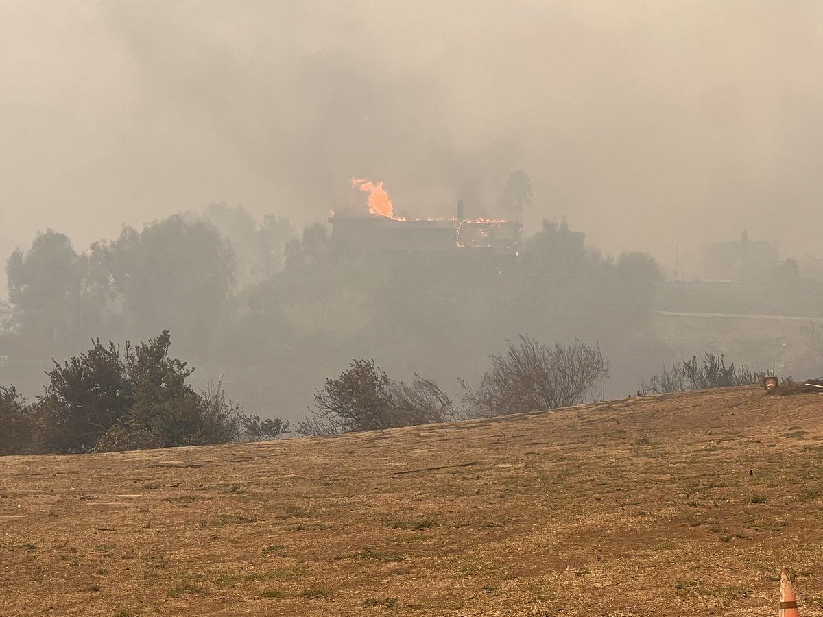 More devastation: Marquez Charter School is apparently destroyed (it was too dangerous for me to get closer). The Presbyterian Church; a house on Las Casas; a home across Palisades Drive off Paseo Miramar. All destroyed. Just a few snapshots of the disaster, still ongoing. (6/15)